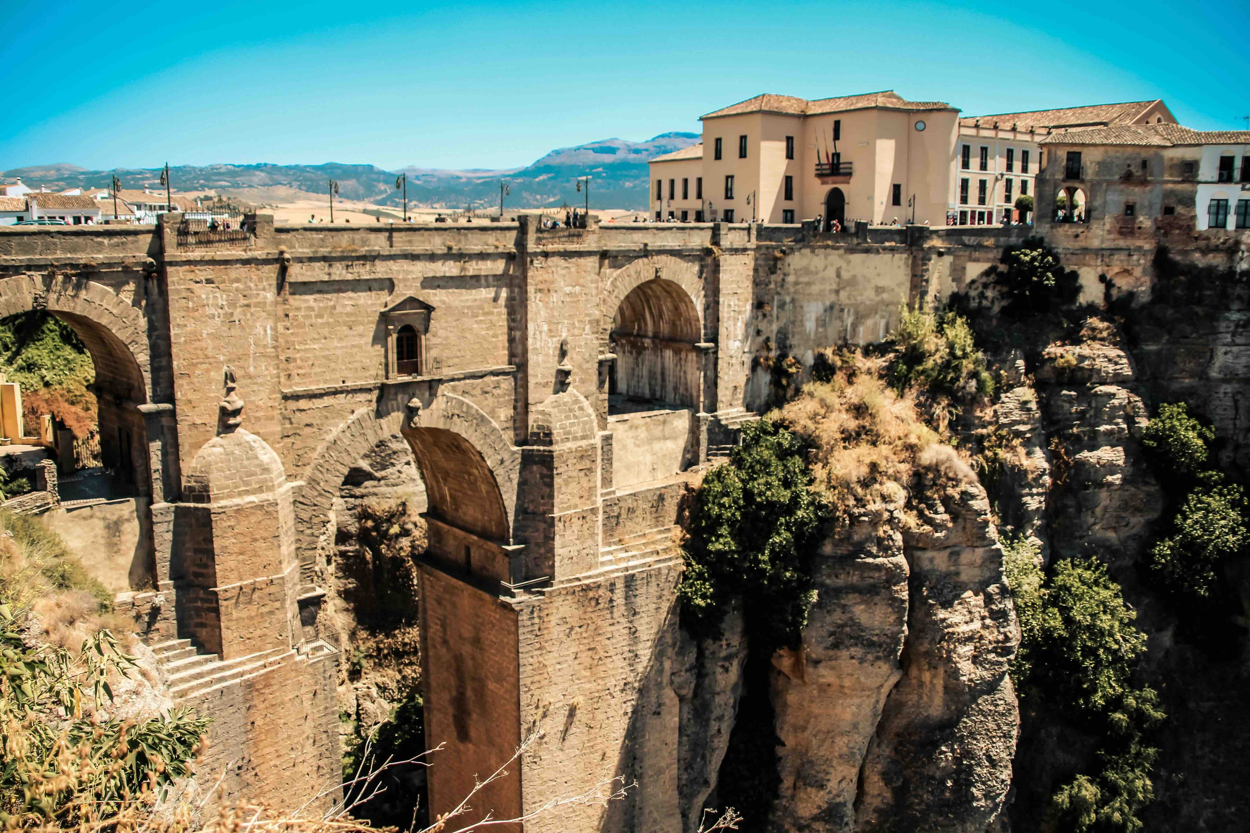 Nach dem Frühstück checkst du aus und fährst über die A-397 ins Landesinnere in die Berge. Unterwegs wechseln sich Serpentinen, Pinienwälder und weite Ausblicke ab. In Ronda erwartet dich die ikonische Puente Nuevo, die die tiefe Tajo-Schlucht überspannt. Spaziere durch die Altstadt, besichtige die Plaza de Toros (eine der ältesten Arenen Spaniens) und probiere lokale Spezialitäten in einer Bodega. Fotostopps an den Miradores sind Pflicht – besonders zur goldenen Stunde. Beende den Abend in einem intimen Restaurant oder auf der Hotelpatio – Ronda ist klein, stimmungsvoll und äußerst fotogen.